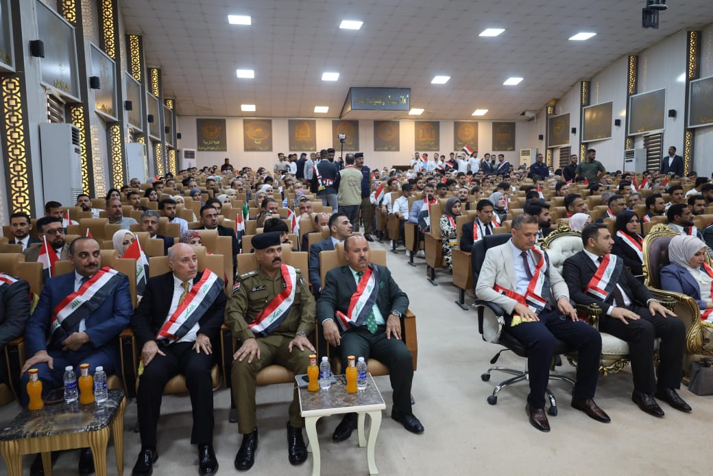 وقد استهلت فعاليات الاحتفال بتلاوة عطرة من آيات الذكر الحكيم، تلتها مراسم عزف النشيد الوطني العراقي ونشيد جامعة تكريت، ثم ألقى السيد رئيس الجامعة كلمة عبر فيها عن فخره واعتزازه بهذه المناسبة الوطنية الخالدة، مؤكداً أن اليوم الوطني يمثل محطة للتعبير عن عمق الانتماء للوطن، وتجديد العهد في خدمته بعلم وإخلاص ومسؤولية.