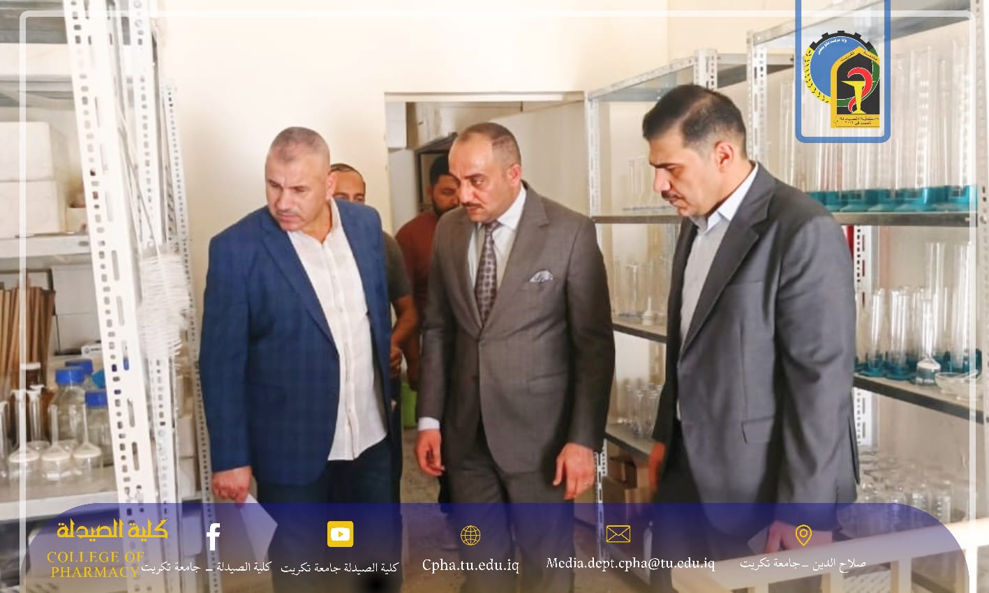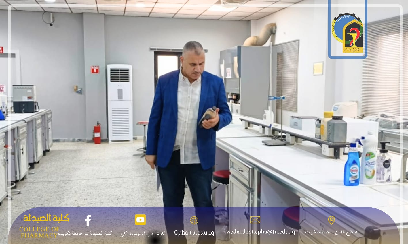 في إطار توجيهات وزارة التعليم العالي والبحث العلمي ورئاسة جامعة تكريت، بشأن ضرورة توفير وتنفيذ أعلى معايير السلامة والأمن داخل المؤسسات التعليمية، استقبلت كلية الصيدلة – جامعة تكريت، الدكتور م.د. عماد محمد عوسج، مدير شعبة السلامة والأمن الكيميائي والبايولوجي والإشعاعي في رئاسة الجامعة، في زيارة ميدانية شملت مختبرات الكلية والمرافق التابعة لها.