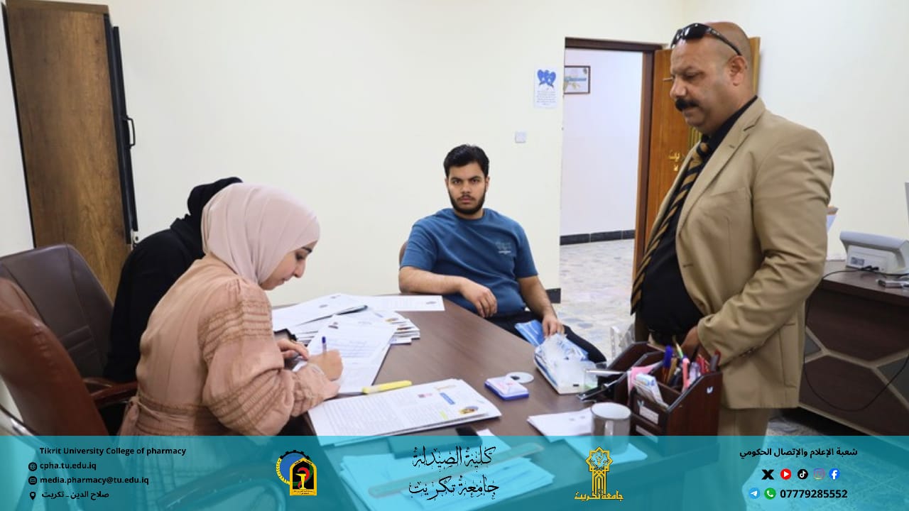 تواصل كلية الصيدلة في جامعة تكريت أعمال تسجيل الطلبة الجدد المقبولين في المرحلة الأولى للعام الدراسي 2025–2026، وذلك بعد أن باشرت لجنة استقبال الطلبة مهامها منذ يوم الأحد الماضي، وسط أجواء تنظيمية متميزة وإشراف مباشر من عمادة الكلية.