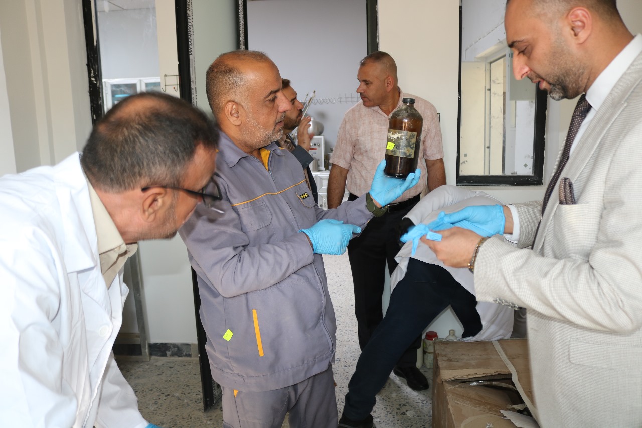 زار كلية الصيدلة هذا اليوم وفدٌ من لجنة الكشف والمعاينة التابعة الى وزارة التعليم العالي والبحث العلمي/هيئة البحث العلمي/مركز معالجة واتلاف المخلفات الكيميائية والبايولوجية والحربية، وذلك لغرض اكمال الإجراءات القانونية للتخلص من المواد التالفة حسب الضوابط والتعليمات، وقد رافق اللجنة في جولتهم داخل مختبرات الكلية المدرس الدكتور علي حسين عباس عميد الكلية، والمدرس الدكتور علي حسين مصطفى والمدرس الدكتور عماد محمد عوسج وعدد من مشرفي المختبرات.