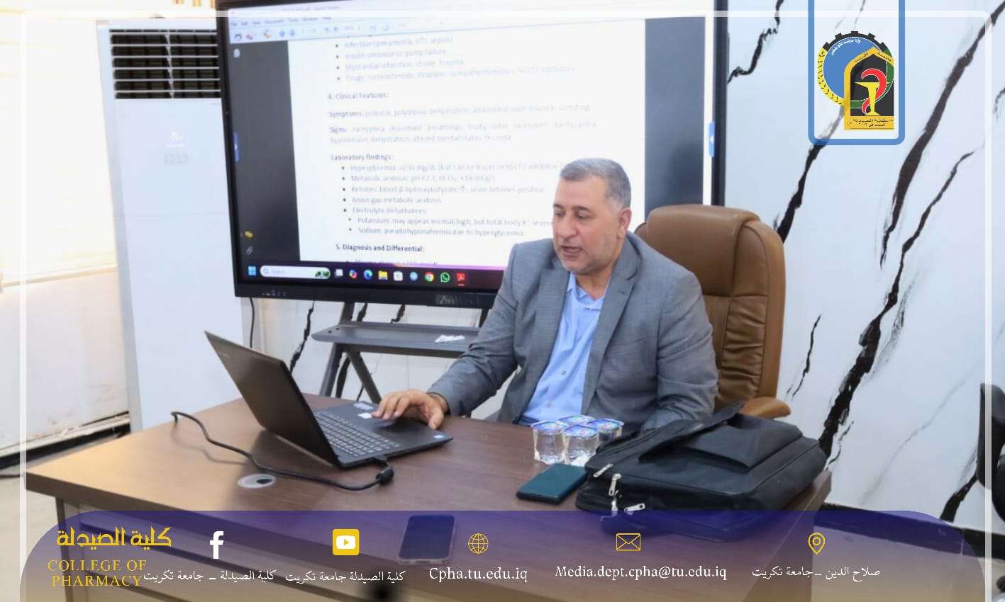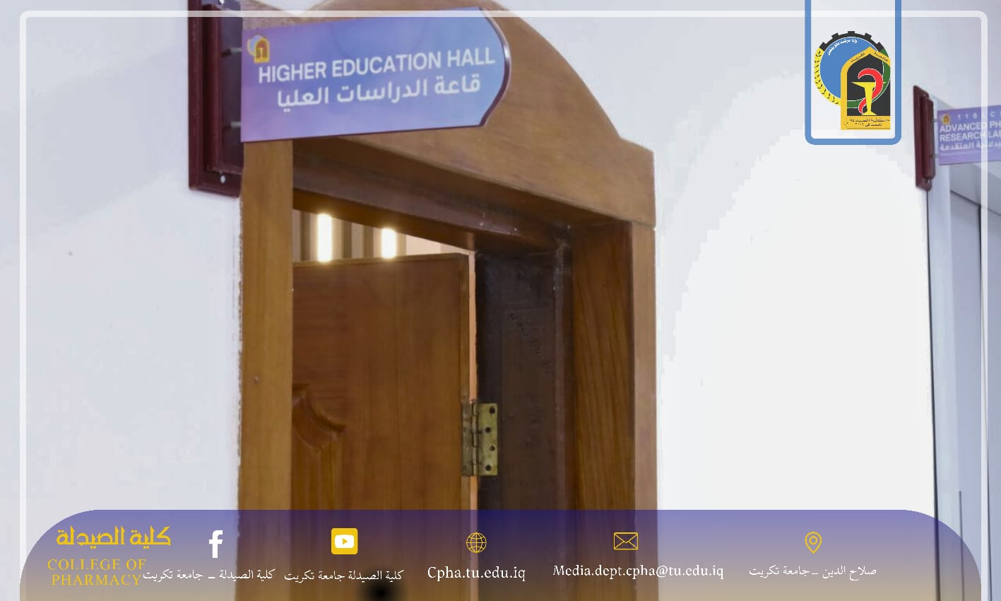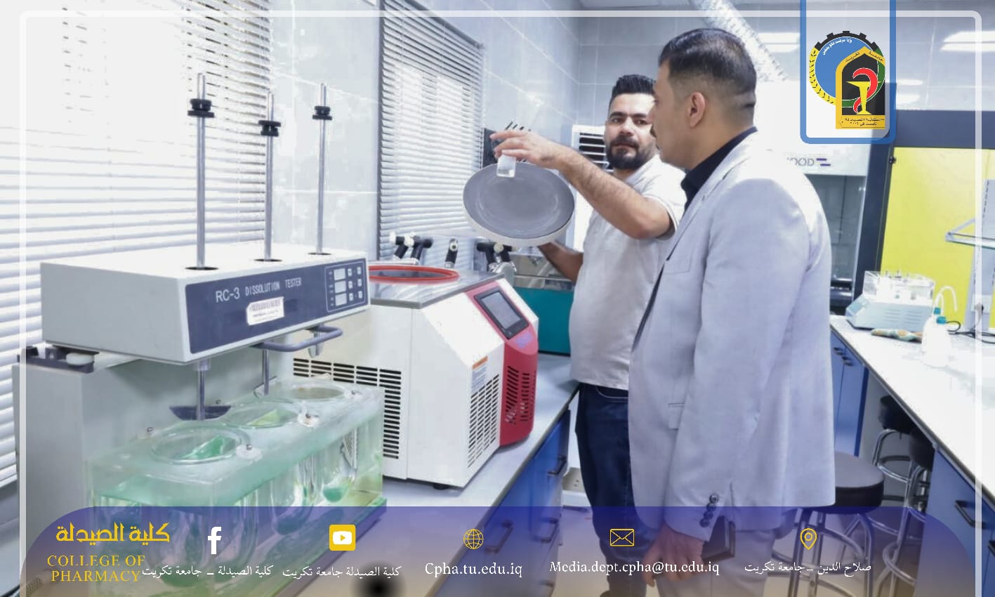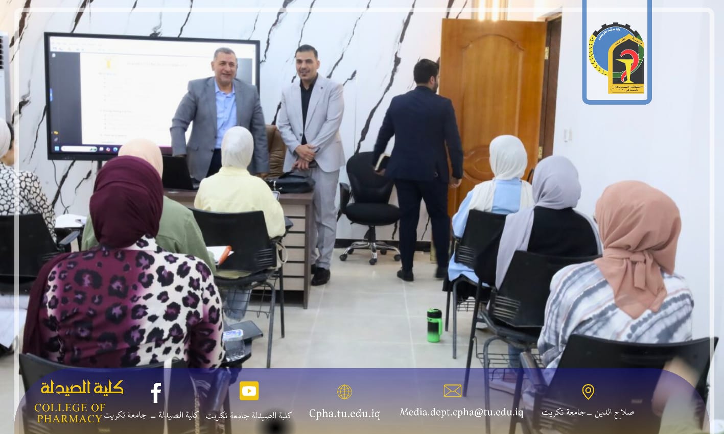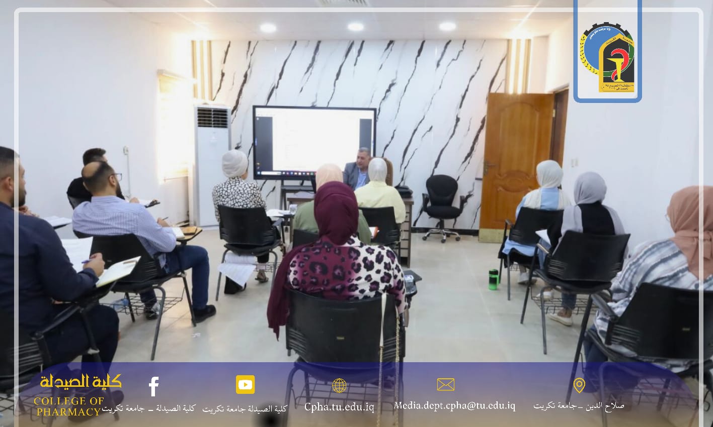 ضمن إطار اهتمام عمادة كلية الصيدلة – جامعة تكريت بمتابعة شؤون طلبتها وتهيئة البيئة التعليمية الملائمة، زار الأستاذ المساعد الدكتور عمر حسين أحمد، معاون العميد للشؤون العلمية، قاعة الدراسات العليا في الكلية، حيث التقى بالطلبة خلال المحاضرة واطلع على الأجواء العلمية ومستوى الالتزام بالحضور.
