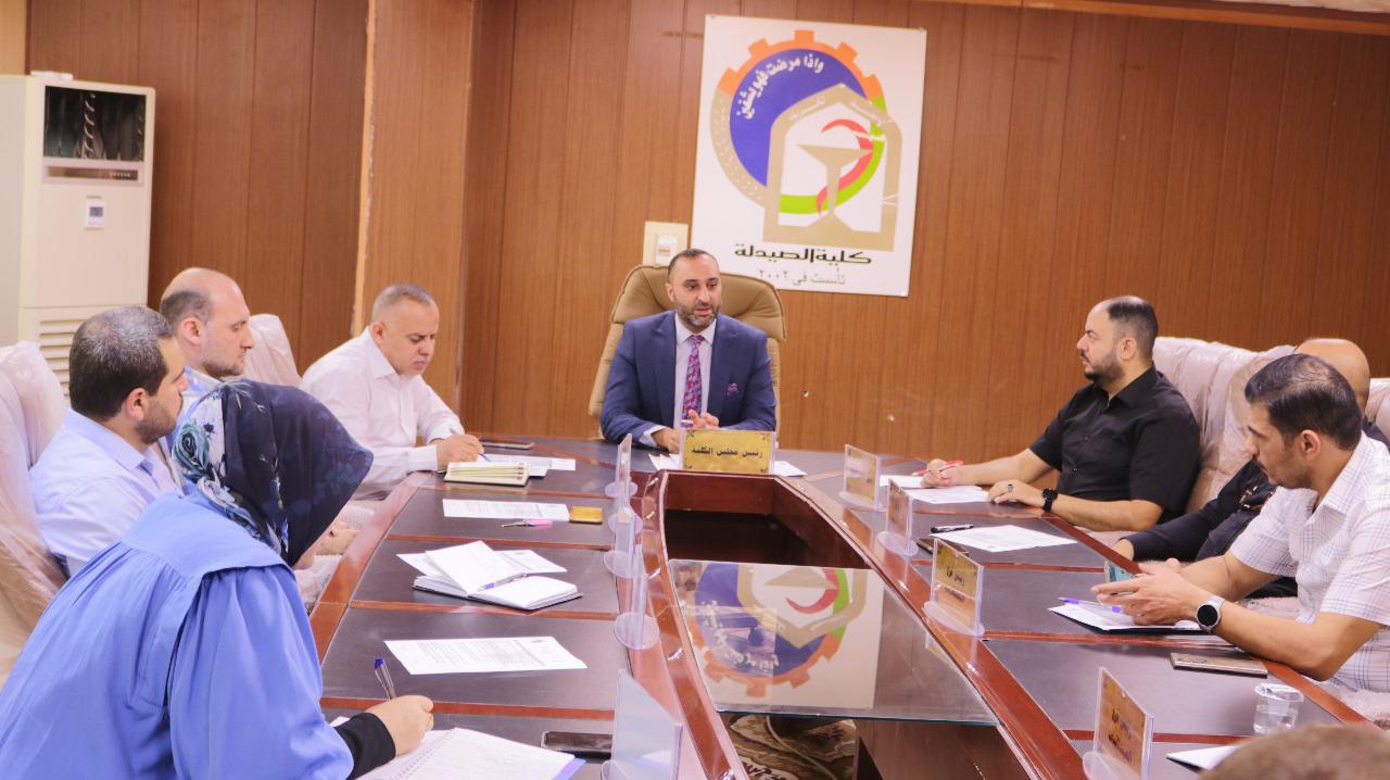 عقد مجلس كلية الصيدلة اليوم جلسته السابعة للعام الدراسي ٢٠٢٣-٢٠٢٤ ببحضور كافة اعضاءه.وقد ناقش المجلس عدة امور تنظيمية وادارية تخص الكلية والعاملين فيها والطلبة.