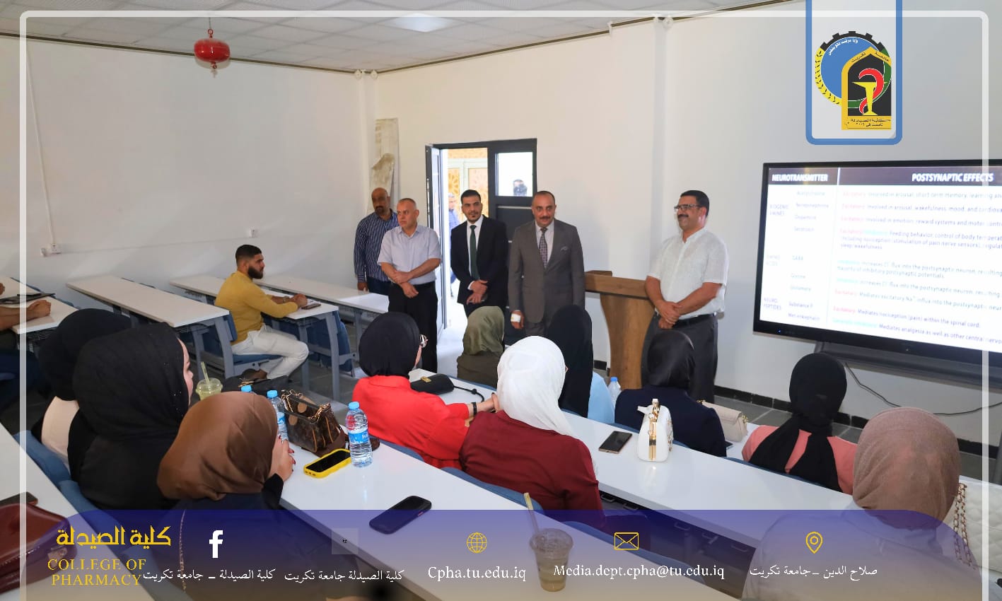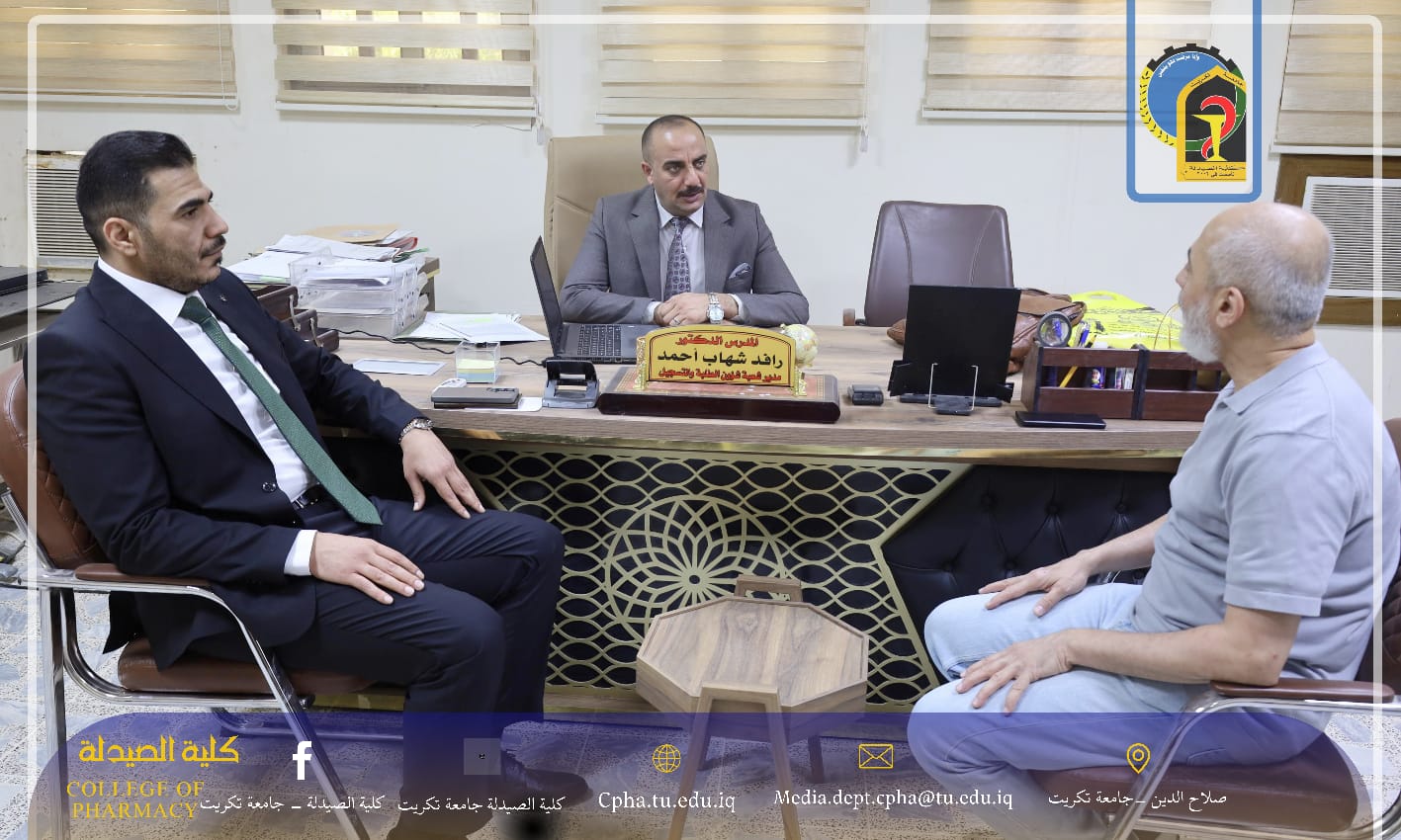 استقبلت كلية الصيدلة – جامعة تكريت عامها الدراسي الجديد 2025–2026 بأجواء علمية مفعمة بالحيوية، حيث أجرى الأستاذ المساعد الدكتور عمر صالح حسن، عميد الكلية، جولة ميدانية رافقه فيها معاون العميد للشؤون الإدارية المدرس الدكتور نهاد حسين أحمد ومعاون العميد للشؤون العلمية الأستاذ المساعد الدكتور عمر حسين أحمد.