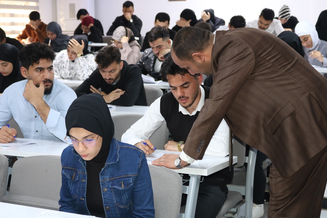 قام عميد كلية الصيدلة أ. م. د. عمر صالح حسن بجولة للقاعات الامتحانية لمتابعة سير امتحانات منتصف الفصل الدراسي الثاني، حيث حرص على التواجد في القاعات لمتابعة سير العملية الامتحانية وانتظامها ، وتوفير بيئة مناسبة للطلاب. واطلع على الإجراءات التنظيمية التي تقوم بها اللجنة الامتحانية لضمان سير الامتحانات بسلاسة، مؤكداً على أهمية الالتزام بالتعليمات والضوابط المتعلقة بالامتحانات. كما أبدى دعمه الكامل للطلبة وأعضاء الهيئة التدريسية في هذه الفترة الهامة، مشدداً على ضرورة التعاون لضمان تحقيق أعلى معايير الأمان الأكاديمي والامتحاني واعلى نسبة نجاح.