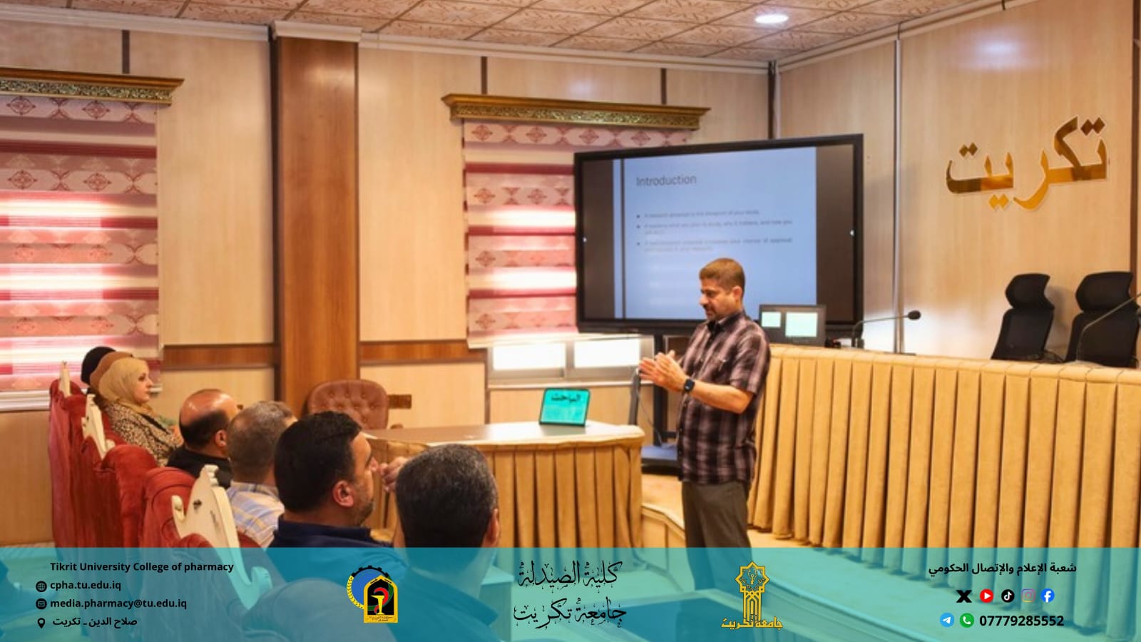 برعاية الأستاذ الدكتور وعد محمود رؤوف رئيس جامعة تكريت، وبإشراف الأستاذ المساعد الدكتور عمر صالح حسن عميد كلية الصيدلة، والأستاذ المساعد الدكتور سياف عبد حسين مدير مركز التعليم المستمر، أقامت كلية الصيدلة بالتعاون مع مركز التعليم المستمر وقسم الشؤون العلمية ندوة حضورية بعنوان: