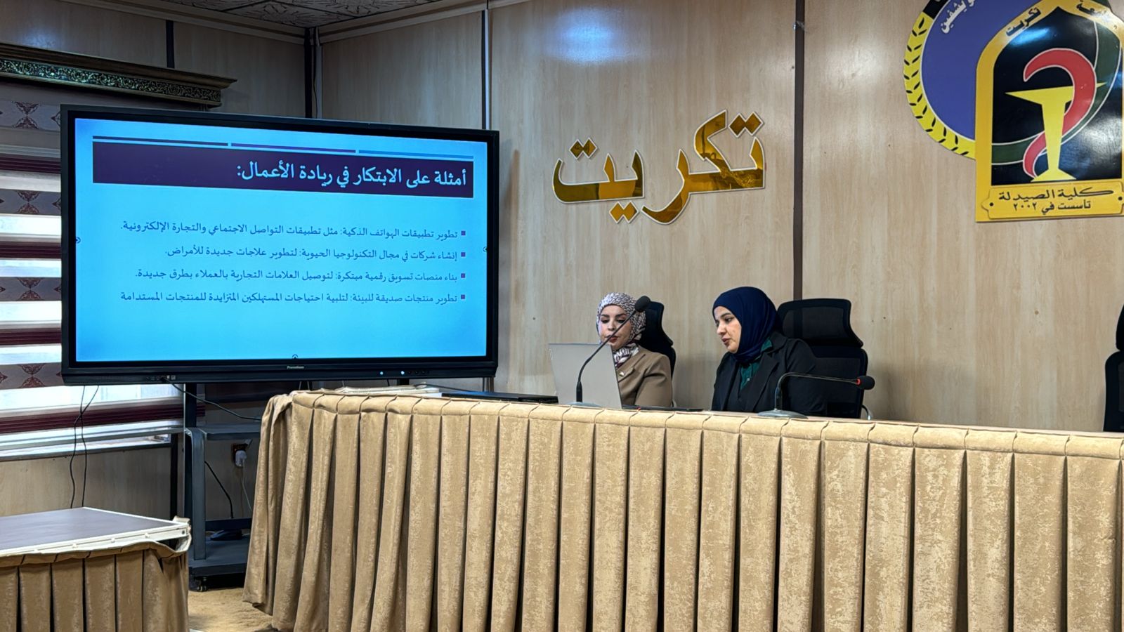 اقيمت على قاعة السيمنار في كلية الصيدلة ندوة تناقش أهمية ريادة الاعمال في المجتمع قدمها كل من م.د. غفران مرشود لطيف ، و م.م. ميمونه حميد خضير من فرع العقاقير والنباتات الطبية.