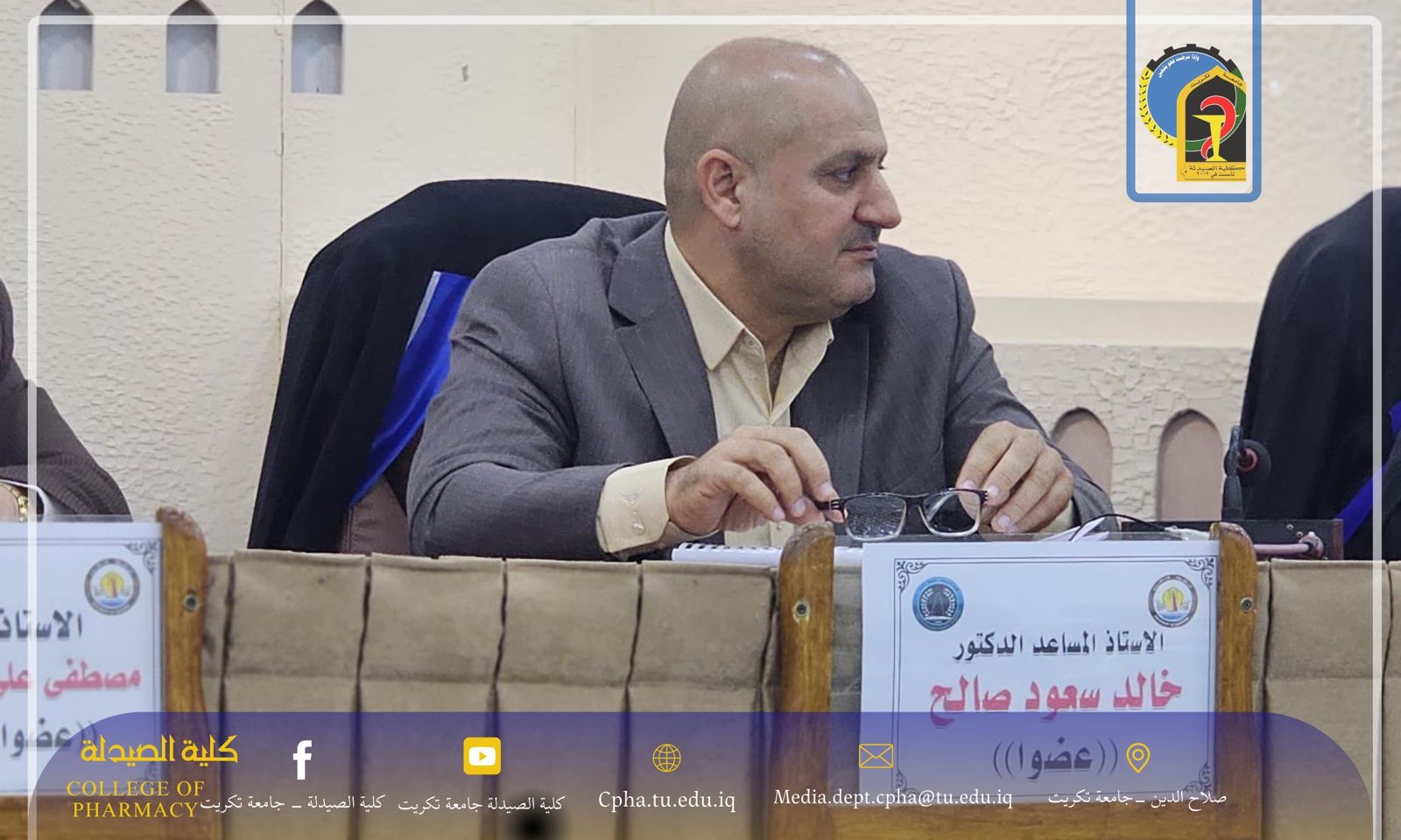 شارك الأستاذ المساعد الدكتور خالد سعود صالح، رئيس فرع الأدوية والسموم في كلية الصيدلة، بعضوية لجنة مناقشة رسالة ماجستير في كلية التربية / قسم علوم الحياة بجامعة سامراء، للباحثة (اية حارث شامل).