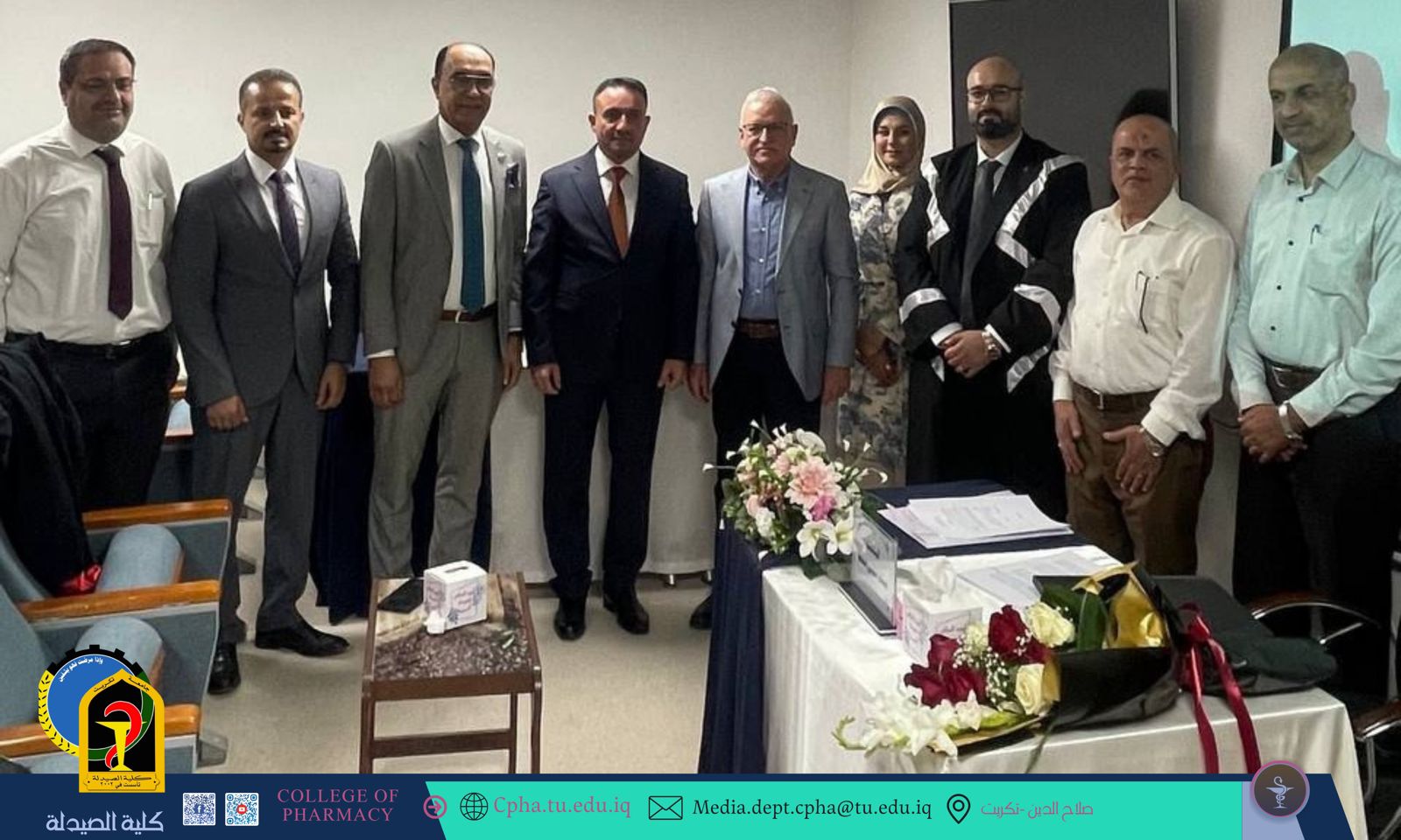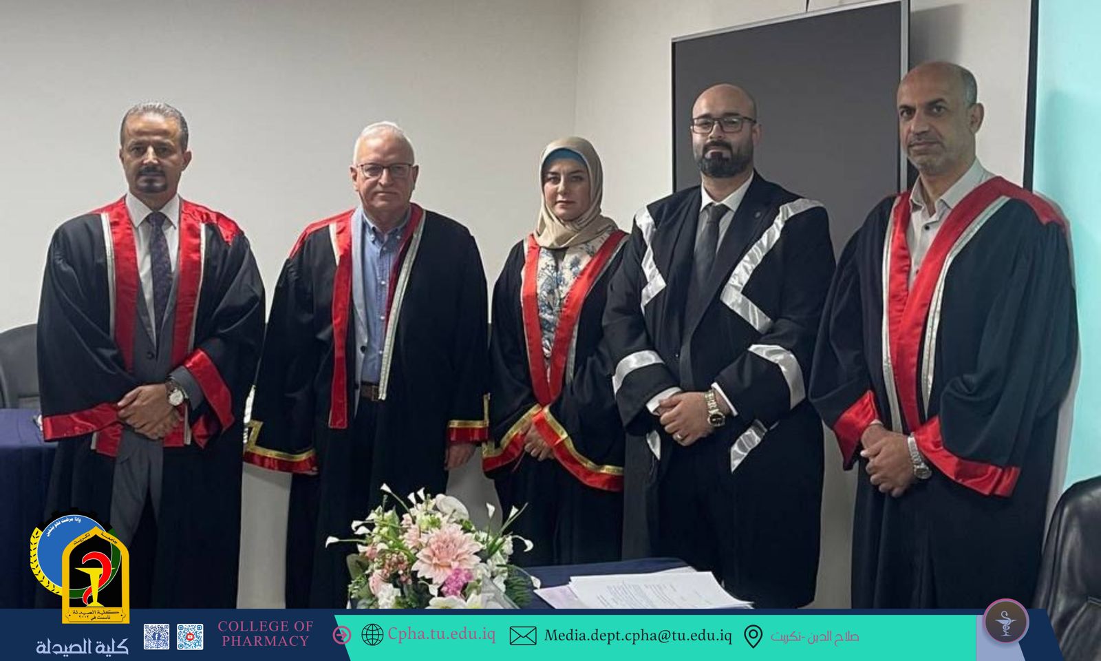 شاركت الاستاذ المساعد الدكتورة زينب مصطفى مهدي (فرع الصيدلة السريرية) بمناقشات الدراسات العليا لطلبة المرحلة الاخيرة/ بورد الصيدلة السريرية (المعادل للدكتوراه) ، والتي أقيمت بمستشفي بغداد التعليمي في مدينة الطب، وبهذا تعد الدكتورة زينب أول صيدلانية (بلقب زميل المجلس العراقي للاختصاصات الطبية ) تشارك بامتحان ومناقشات طلبة البورد في تاريخ المجلس العراقي للاختصاصات الطبية. علماً ان الدكتورة زينب شاركت بمناقشتين خلال اسبوع واحد الاولى لبحث بعنوان (تحقيق المستوى العلاجي لزمن الثرمبوبلاستين الجزئي للهيبارين غير المجزأىودور الصيدلي السريري في تحقيق ذلك في ردهة الانعاش القلبي) والثانية لبحث بعنوان (دور مقيمي بورد الصيدلة السريرية في تقليل المشاكل المتعلقة بالأدوية في مجمع مدينة الطب).
