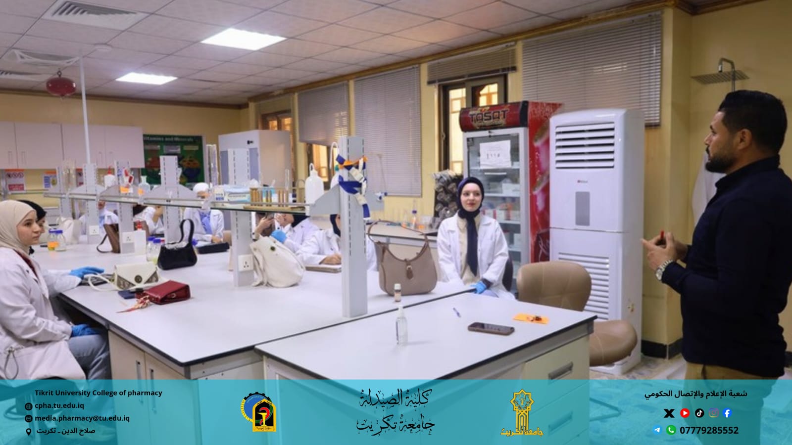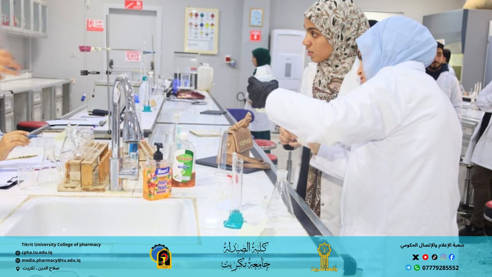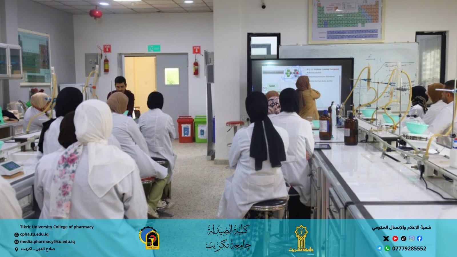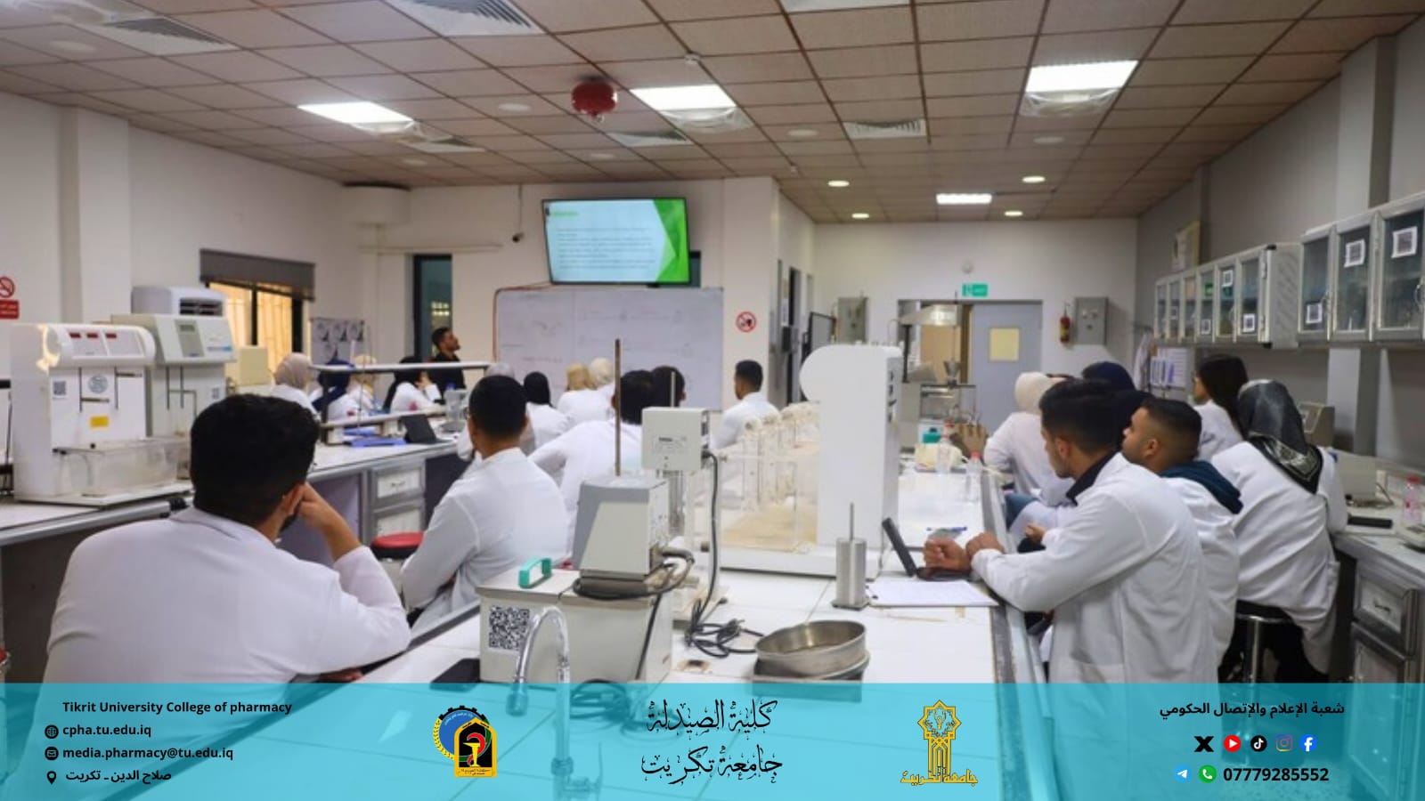تواصل كلية الصيدلة في جامعة تكريت تنفيذ المحاضرات العملية في مختبراتها العلمية لطلبة المراحل الدراسية المختلفة، ضمن الخطة الدراسية للعام الجامعي 2025–2026، وبإشراف مباشر من الكادر التدريسي المختص.