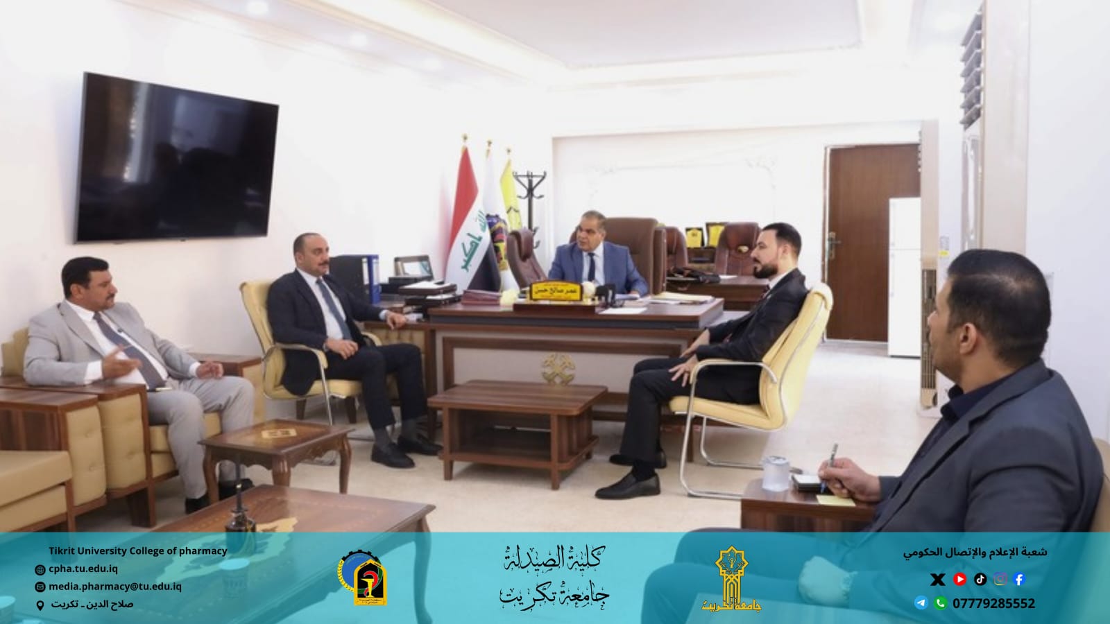استقبلت كلية الصيدلة في جامعة تكريت السيد مساعد رئيس الجامعة للشؤون العلمية الدكتور حسن حسين اسكندر، وبرفقته الدكتور نمير مدير قسم الشؤون العلمية في رئاسة الجامعة، وذلك في زيارة علمية تهدف إلى الاطلاع على سير العملية التعليمية وآلية التدريس في الكلية، ومتابعة تنفيذ مفردات المناهج الدراسية.