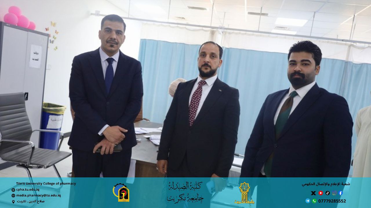زار وفد من كلية الصيدلة بجامعة تكريت المركز التخصصي للأورام التابع لدائرة صحة صلاح الدين، برئاسة الأستاذ المساعد الدكتور عمر حسين أحمد – معاون العميد للشؤون العلمية، وبمشاركة نخبة من أعضاء الهيئة التدريسية والموظفين ومجموعة من طلبة الكلية.